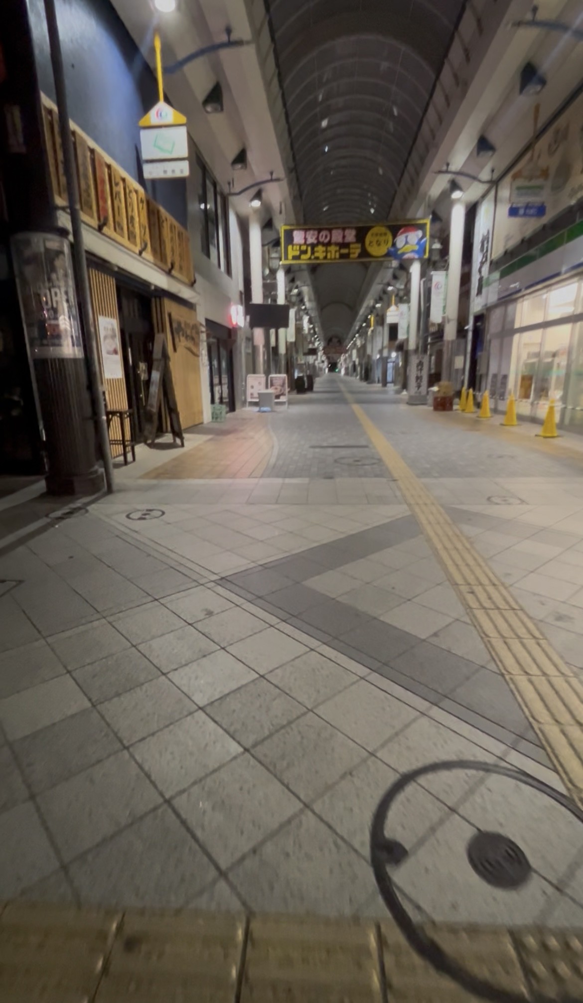 【写真:深夜4時の竹町商店街です。人が居ないで寂しいです】